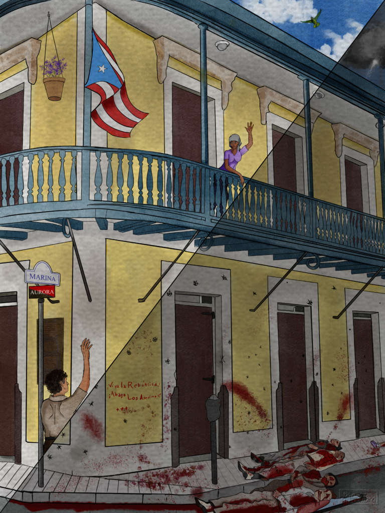 Once more, a shot cracks through the air.  As Juan Torres Gregory, just an eighteen year old boy who was watching the parade eagerly through his window, falls to the ground below seconds later—dead. An elderly man, Obdulio Rosario, was clutching his palm shaped into a crucifix, when the third shot rang out. His eyes widened, his mouth dropped open as blood poured out of it. There were a few seconds of Obdulio’s panicked eyes glancing around before he drops in a heap. Still, he managed to crawl forward as the crowd stared in horror. Obdulio pushed his chest off of the ground, blood dribbled down his chin, before he landed on his face. Never to look up again. A thick river of his blood staining the bedrock.